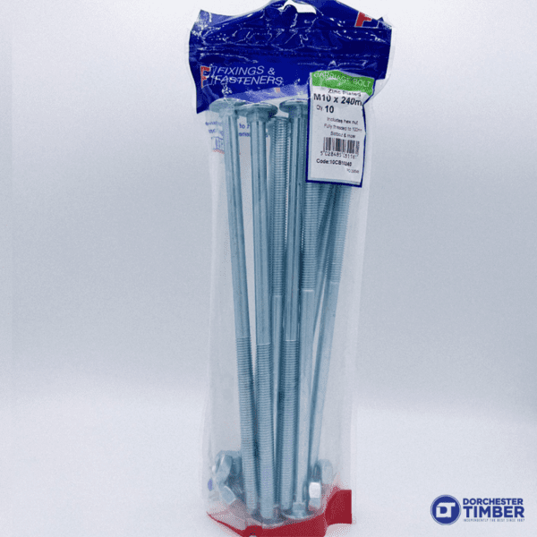 10 x Carriage Bolts & Nuts M10 x 240mm
