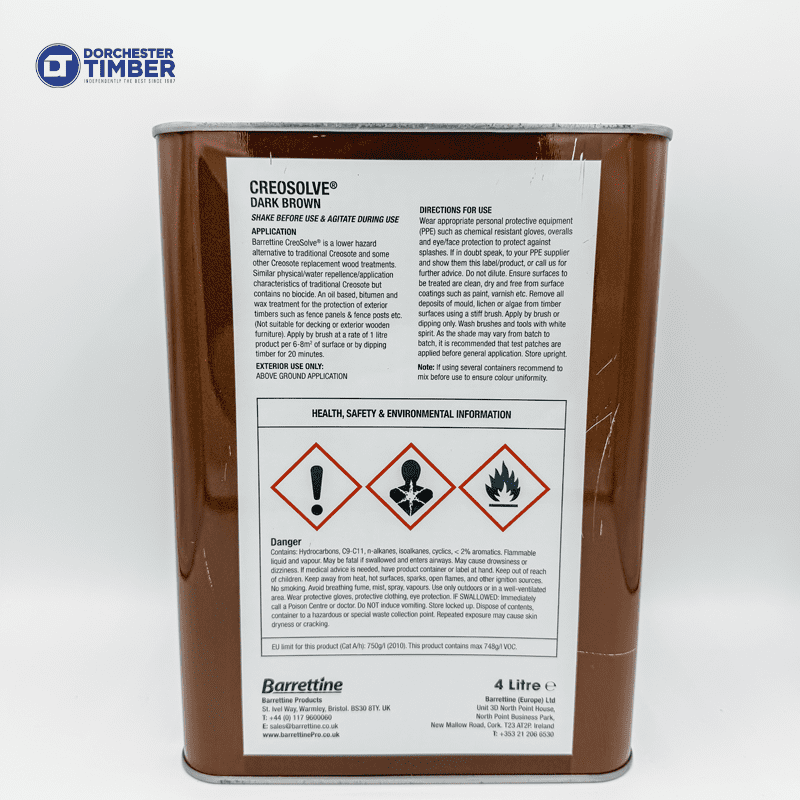 Protect and preserve your outdoor timber with Barrettine CreoSolve Dark Brown 4L, a low-odour, oil-based alternative to traditional creosote. Perfect for rough, sawn, or smooth timbers, it’s ideal for fence panels, posts, garden sheds, and other exterior woodwork.