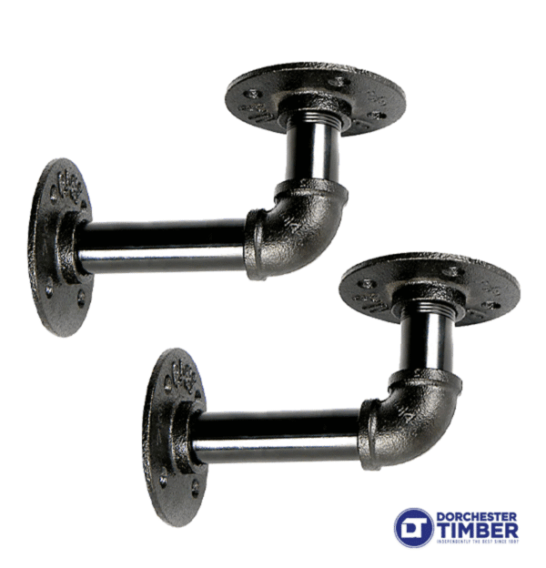 These Industrial Style Pipe Brackets Black are crafted from durable black iron and designed to give your space a bold, rustic look. They’re perfect for creating industrial floating shelves that merge function with vintage charm.