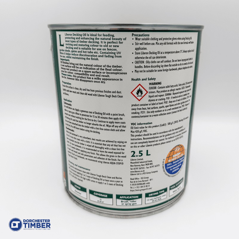 With excellent coverage of up to 10 sqm per litre, Liberon Decking Oil dries to the touch in as little as one hour, with recoating possible after 12–24 hours, making it a convenient choice for busy homeowners and professional landscapers alike.