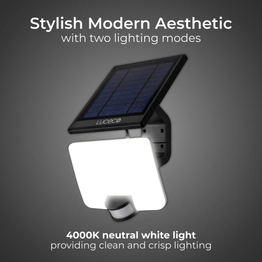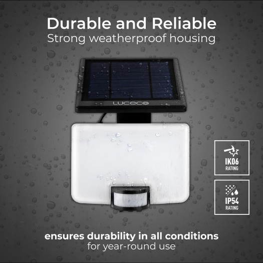 The Luceco Outdoor Solar LED Floodlight delivers powerful, reliable lighting for a wide range of external applications. With a strong 1500 lumen output and neutral white 4000K light, it provides bright, clear illumination ideal for driveways, gardens, yards and commercial spaces.