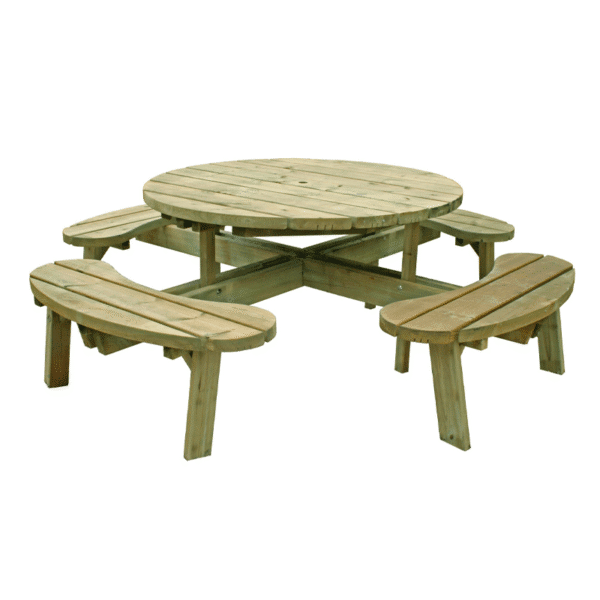 Mabi Table & 8 Seater Round Picnic Softwood Table Set